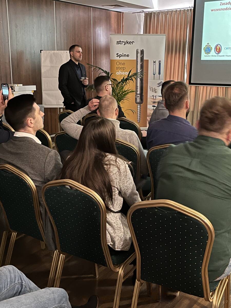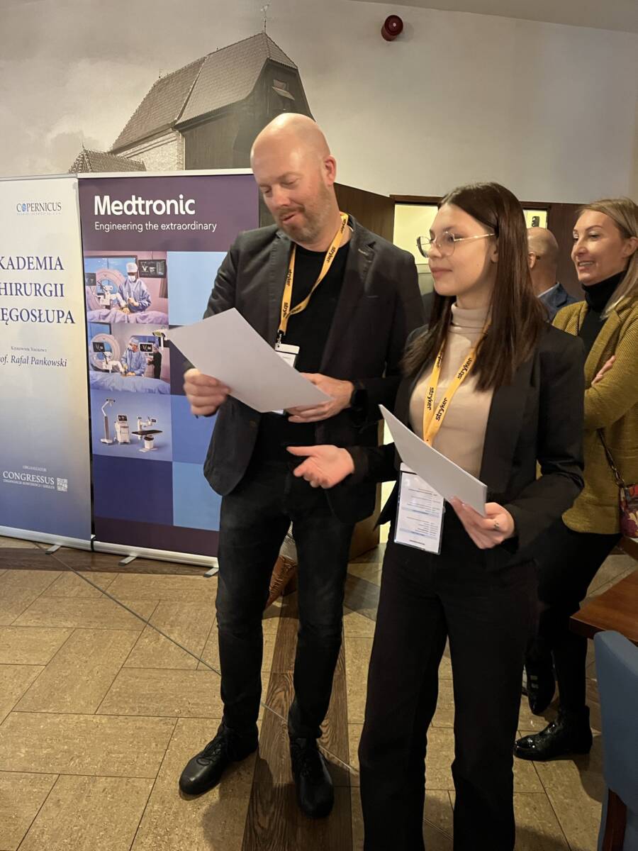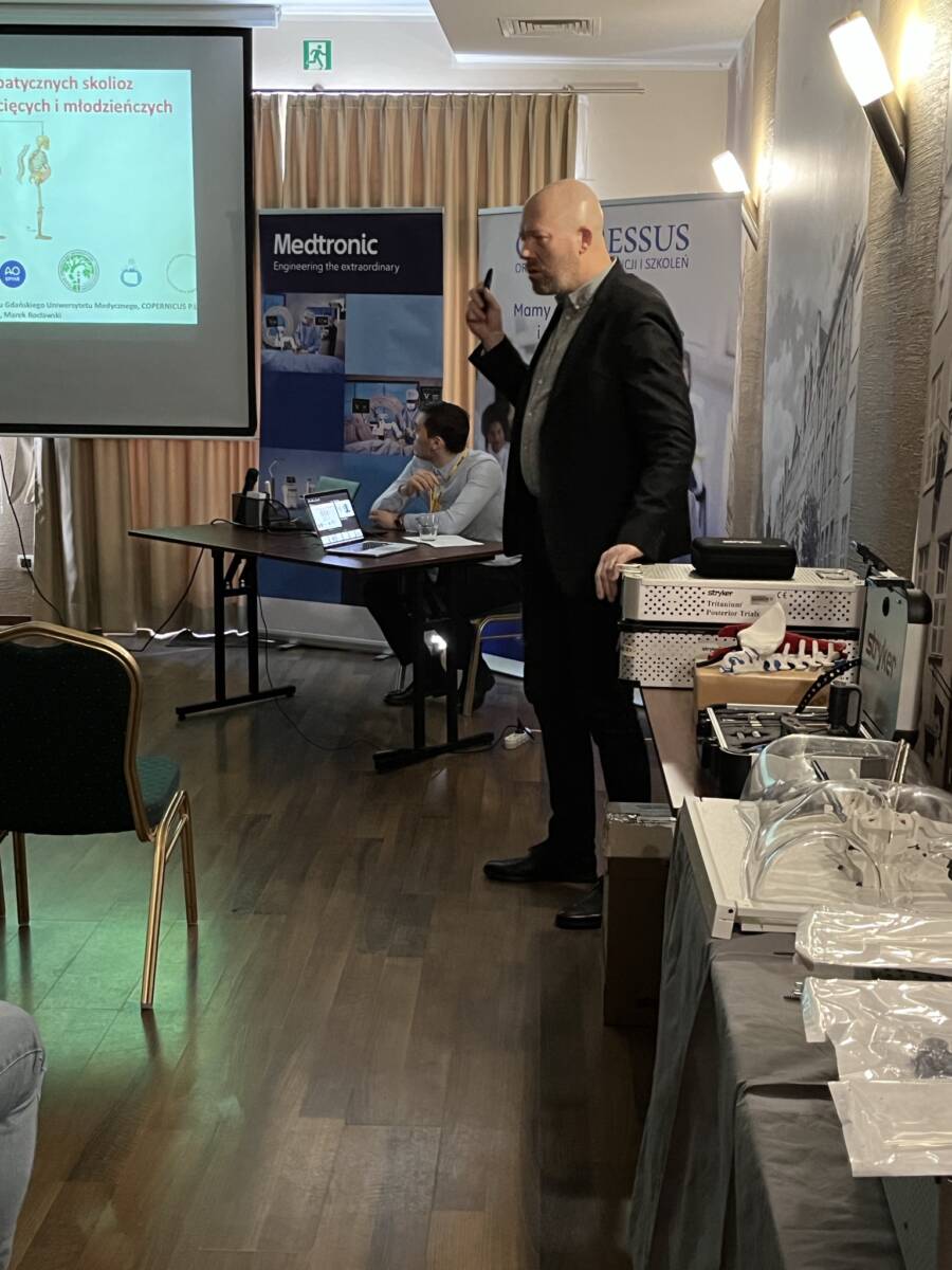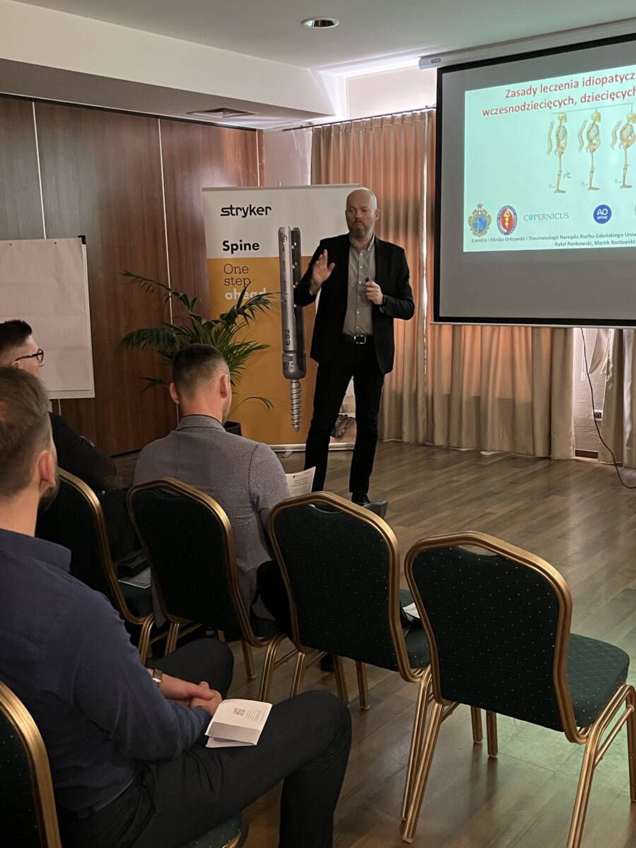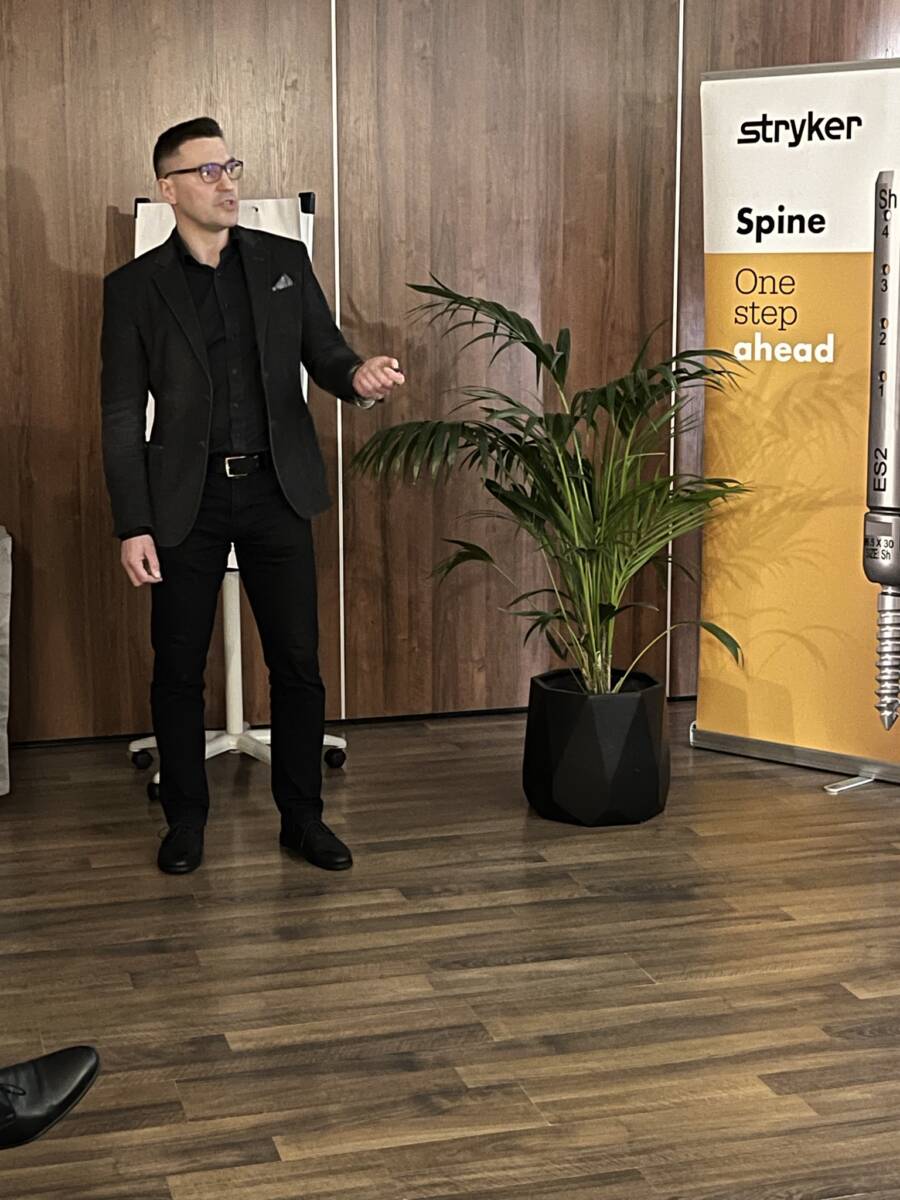 W dniach 12-13 marca 2023 r. w Gdańsku odbyła się pierwsza edycja Akademii Chirurgii Kręgosłupa, której pionierem był prof. Rafał Pankowski. Inauguracyjne spotkanie przerosło nasze oczekiwania, pod względem przygotowania współpracujących z nami firm Medtronic i Stryker oraz zaangażowania uczestników, którzy podzieleni na bardzo małe grupy, mieli okazję ćwiczyć techniki operacyjne oraz wykonywać zespolenia pod okiem prof. Rafała Pankowskiego i dr n. med. Marka Rocławskiego. Pierwszy dzień przebiegał na sali wykładowej, gdzie swoje prezentacje urozmaicone dyskusjami wygłosili obok prof. Pankowskiego i dr n. med. Rocławskiego, lek. Adam Augustyniak i lek. Sergiusz Bielocerkowski. Warsztaty odbywające się drugiego dnia nie byłyby tak ciekawe, gdyby nie firma Medtronic, która z niebywałą wiernością odwzorowała salę operacyjną oraz zaprezentowała innowacyjny robot MAZOR X. Uczestnicy za pomocą stworzonego trójwymiarowego obrazu mogli obserwować narzędzia oraz struktury anatomiczne, wcielając się w rolę operatora planującego zabieg. Podobne uatrakcyjnienie zapewniła firma Stryker, udostępniając okulary 3D szczycące się ogromnym zainteresowaniem. Poniżej relacja fotograficzna z wydarzenia, a kolejna edycja wkrótce!