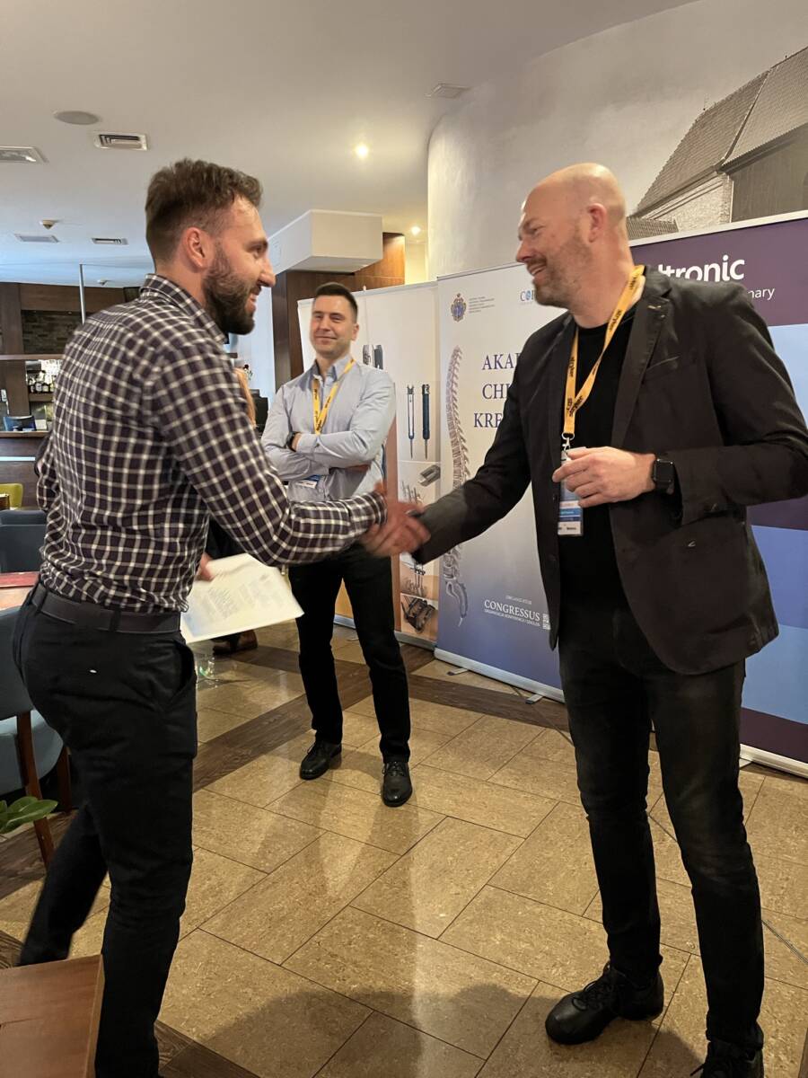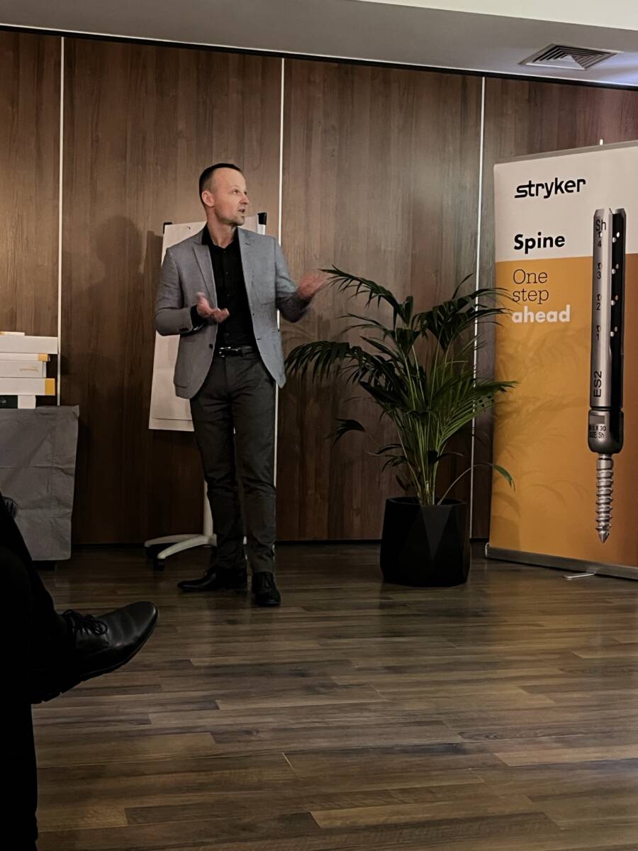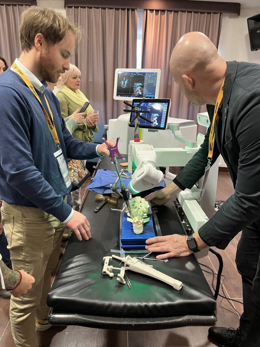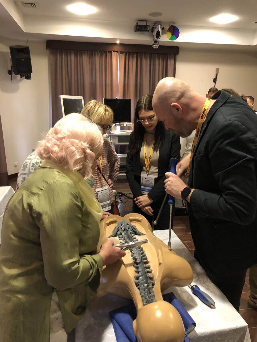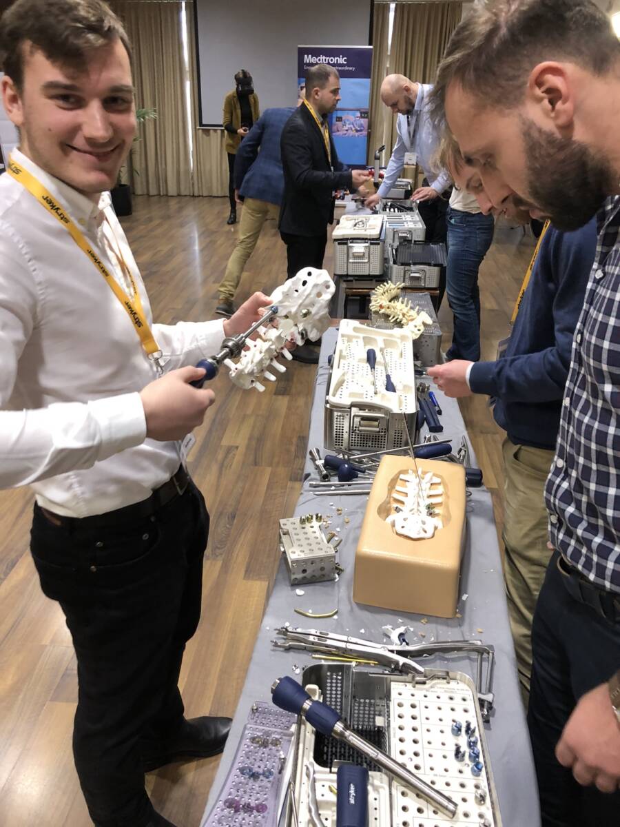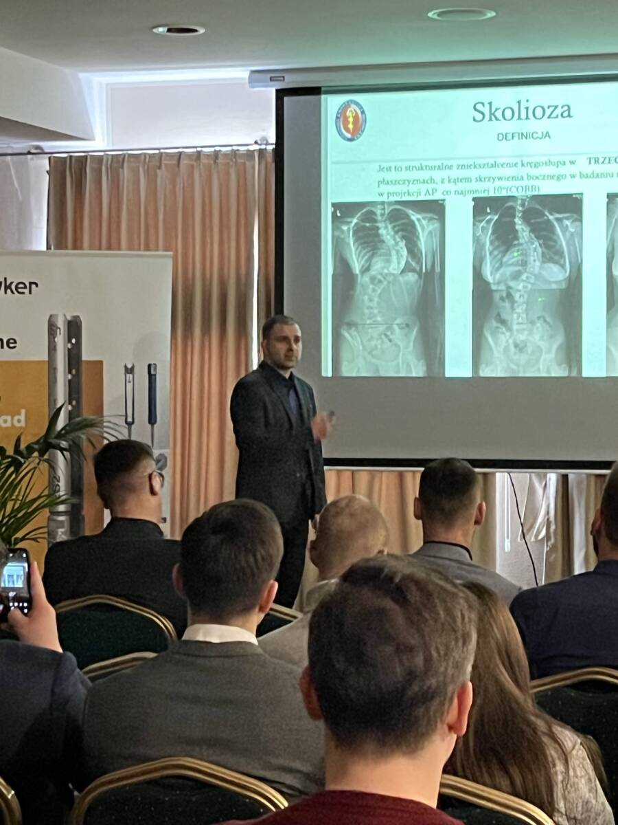 W dniach 12-13 marca 2023 r. w Gdańsku odbyła się pierwsza edycja Akademii Chirurgii Kręgosłupa, której pionierem był prof. Rafał Pankowski. Inauguracyjne spotkanie przerosło nasze oczekiwania, pod względem przygotowania współpracujących z nami firm Medtronic i Stryker oraz zaangażowania uczestników, którzy podzieleni na bardzo małe grupy, mieli okazję ćwiczyć techniki operacyjne oraz wykonywać zespolenia pod okiem prof. Rafała Pankowskiego i dr n. med. Marka Rocławskiego. Pierwszy dzień przebiegał na sali wykładowej, gdzie swoje prezentacje urozmaicone dyskusjami wygłosili obok prof. Pankowskiego i dr n. med. Rocławskiego, lek. Adam Augustyniak i lek. Sergiusz Bielocerkowski. Warsztaty odbywające się drugiego dnia nie byłyby tak ciekawe, gdyby nie firma Medtronic, która z niebywałą wiernością odwzorowała salę operacyjną oraz zaprezentowała innowacyjny robot MAZOR X. Uczestnicy za pomocą stworzonego trójwymiarowego obrazu mogli obserwować narzędzia oraz struktury anatomiczne, wcielając się w rolę operatora planującego zabieg. Podobne uatrakcyjnienie zapewniła firma Stryker, udostępniając okulary 3D szczycące się ogromnym zainteresowaniem. Poniżej relacja fotograficzna z wydarzenia, a kolejna edycja wkrótce!