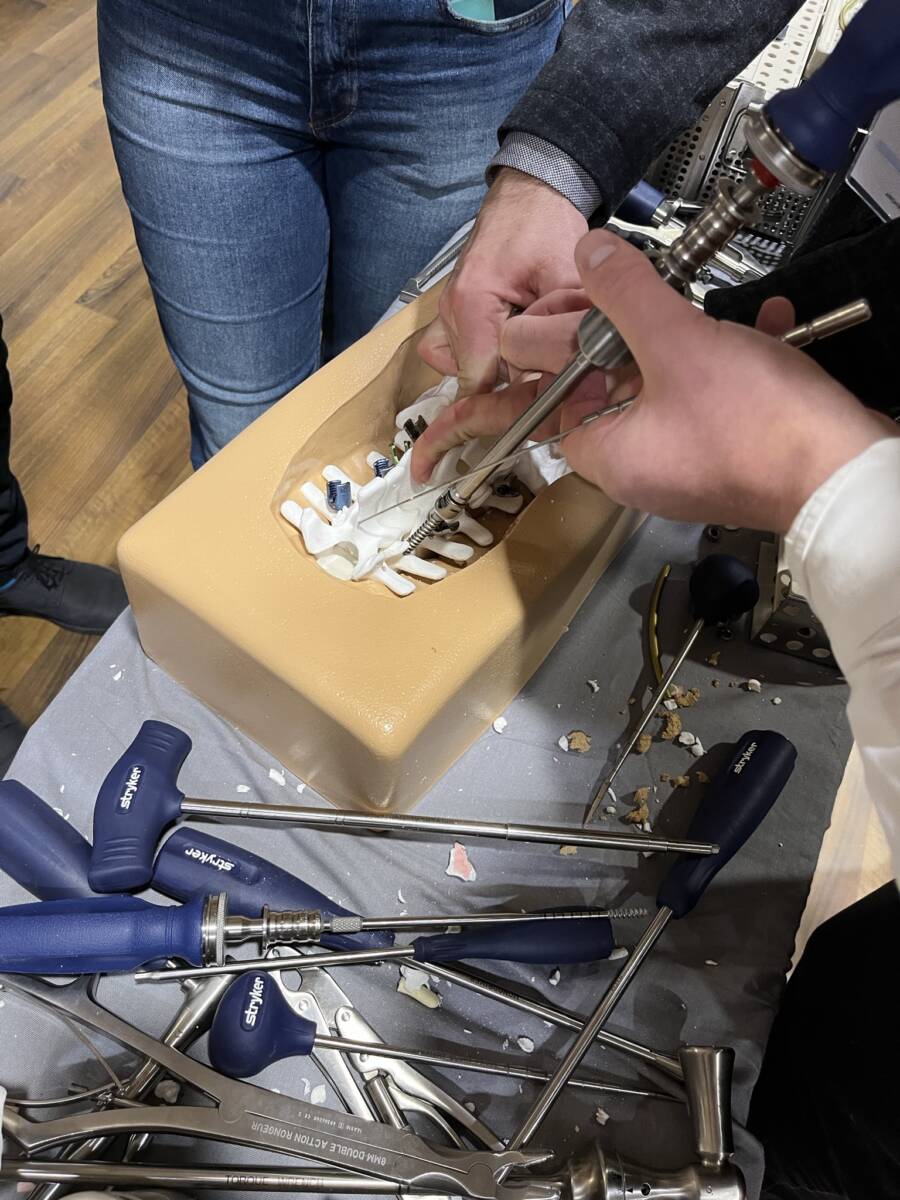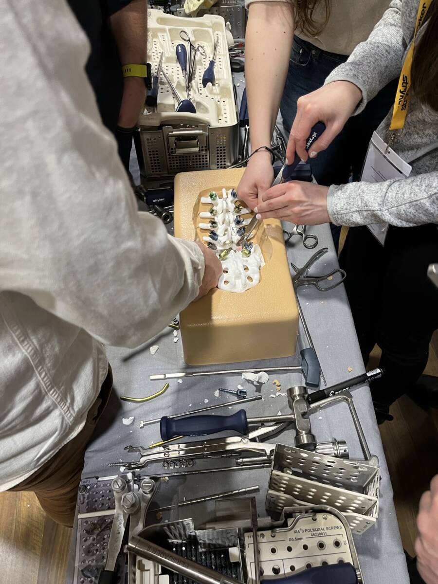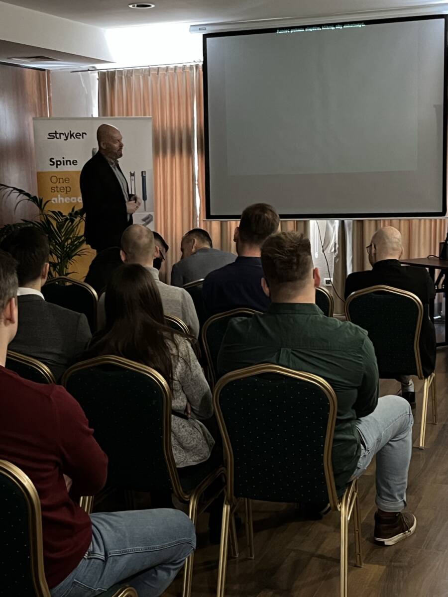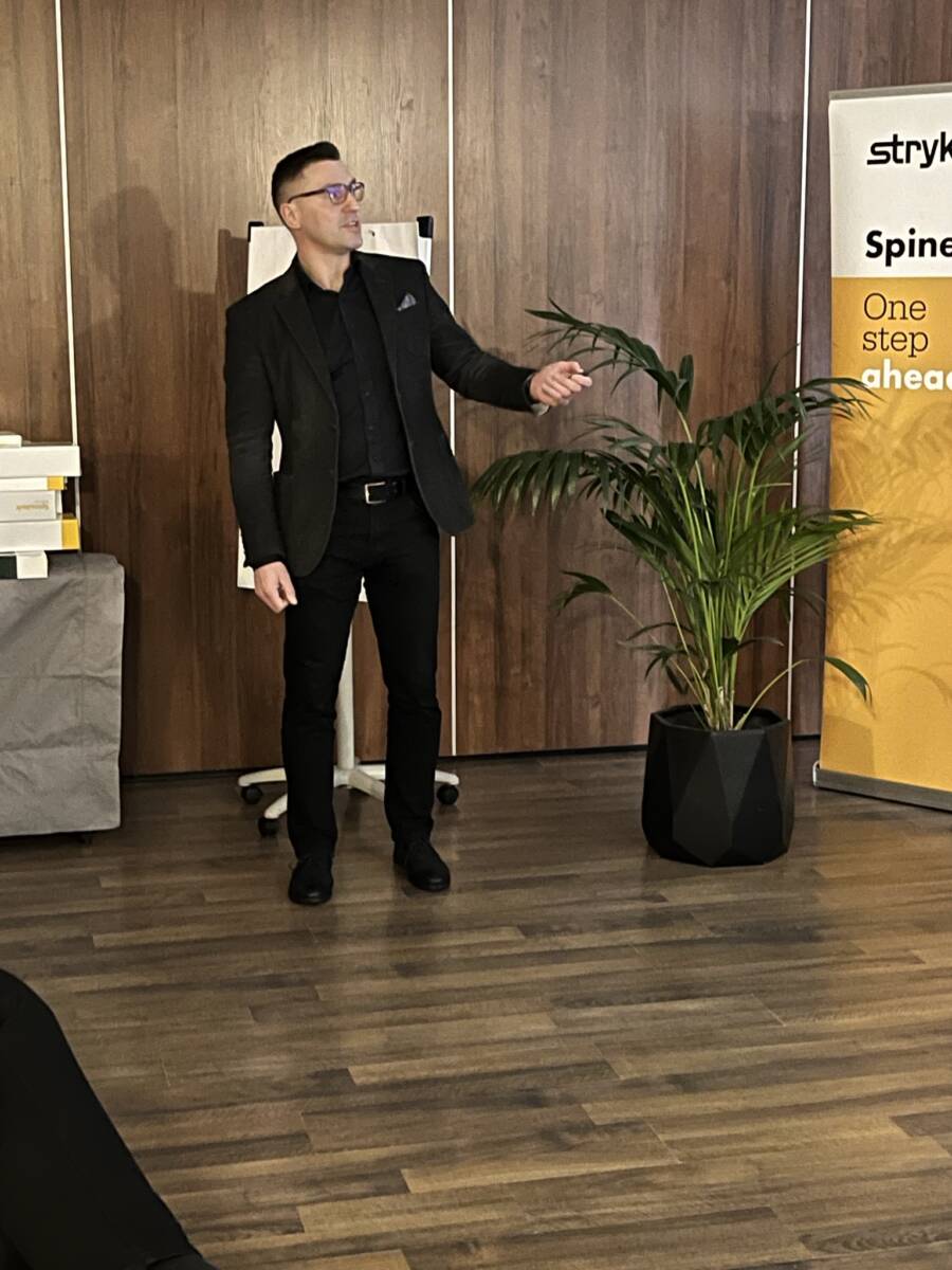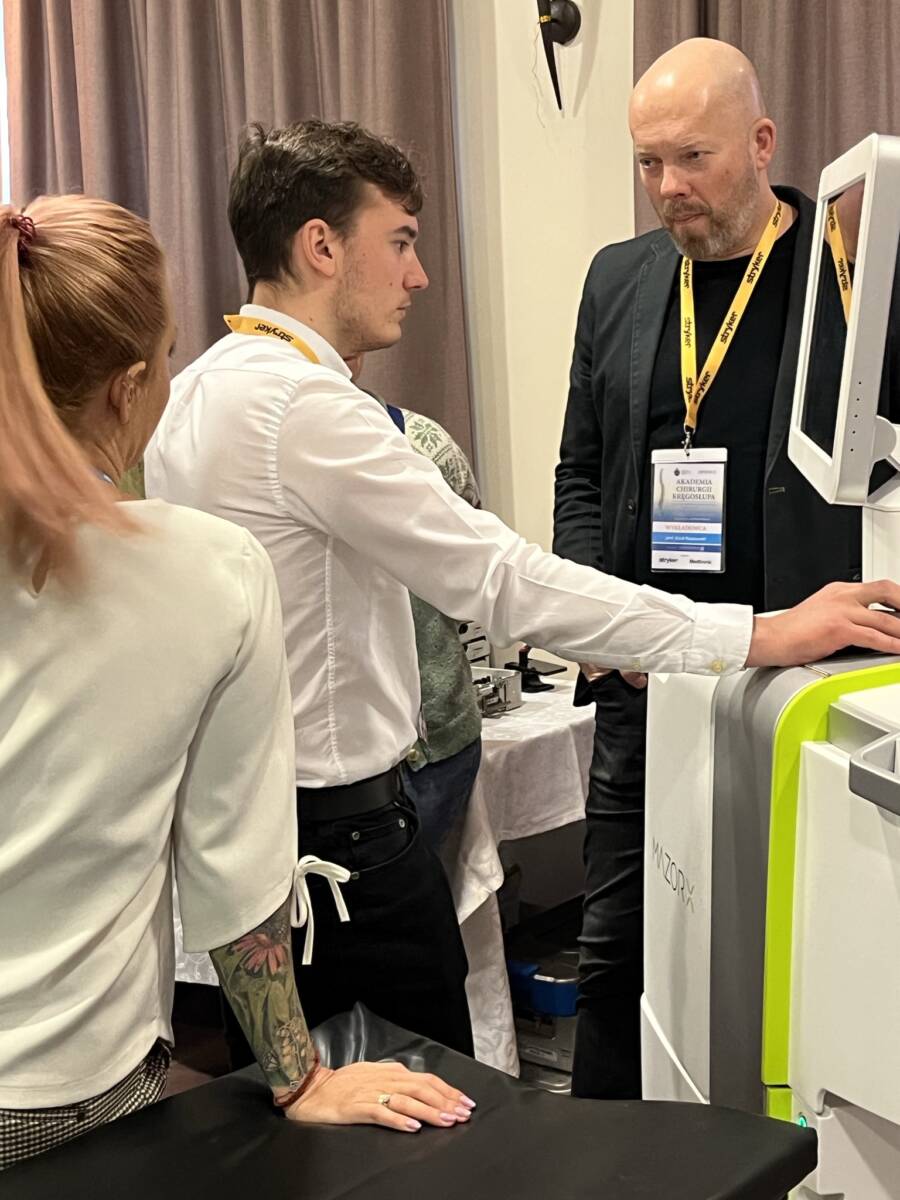 W dniach 12-13 marca 2023 r. w Gdańsku odbyła się pierwsza edycja Akademii Chirurgii Kręgosłupa, której pionierem był prof. Rafał Pankowski. Inauguracyjne spotkanie przerosło nasze oczekiwania, pod względem przygotowania współpracujących z nami firm Medtronic i Stryker oraz zaangażowania uczestników, którzy podzieleni na bardzo małe grupy, mieli okazję ćwiczyć techniki operacyjne oraz wykonywać zespolenia pod okiem prof. Rafała Pankowskiego i dr n. med. Marka Rocławskiego. Pierwszy dzień przebiegał na sali wykładowej, gdzie swoje prezentacje urozmaicone dyskusjami wygłosili obok prof. Pankowskiego i dr n. med. Rocławskiego, lek. Adam Augustyniak i lek. Sergiusz Bielocerkowski. Warsztaty odbywające się drugiego dnia nie byłyby tak ciekawe, gdyby nie firma Medtronic, która z niebywałą wiernością odwzorowała salę operacyjną oraz zaprezentowała innowacyjny robot MAZOR X. Uczestnicy za pomocą stworzonego trójwymiarowego obrazu mogli obserwować narzędzia oraz struktury anatomiczne, wcielając się w rolę operatora planującego zabieg. Podobne uatrakcyjnienie zapewniła firma Stryker, udostępniając okulary 3D szczycące się ogromnym zainteresowaniem. Poniżej relacja fotograficzna z wydarzenia, a kolejna edycja wkrótce!