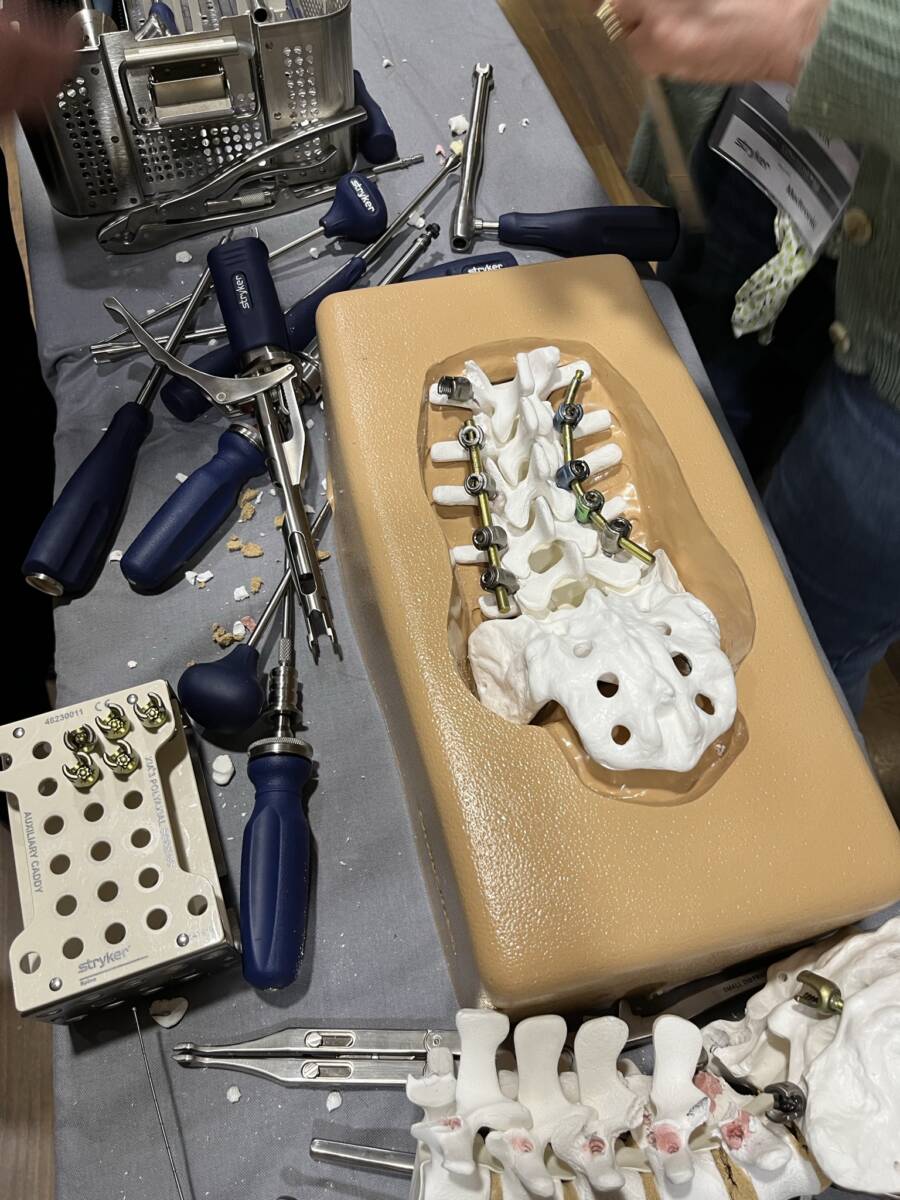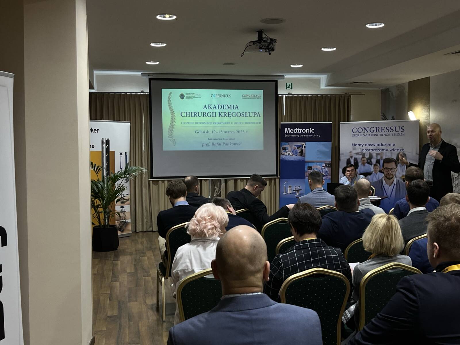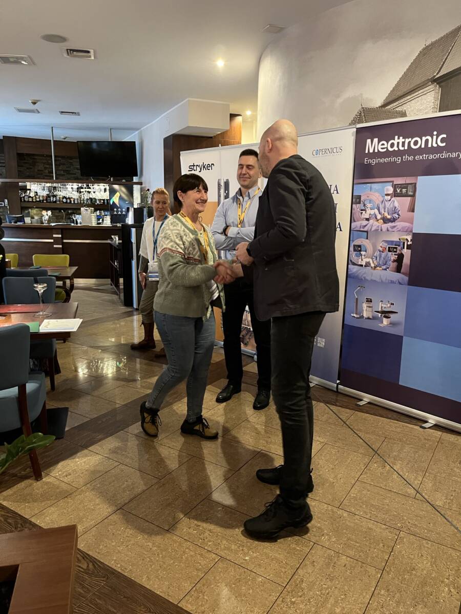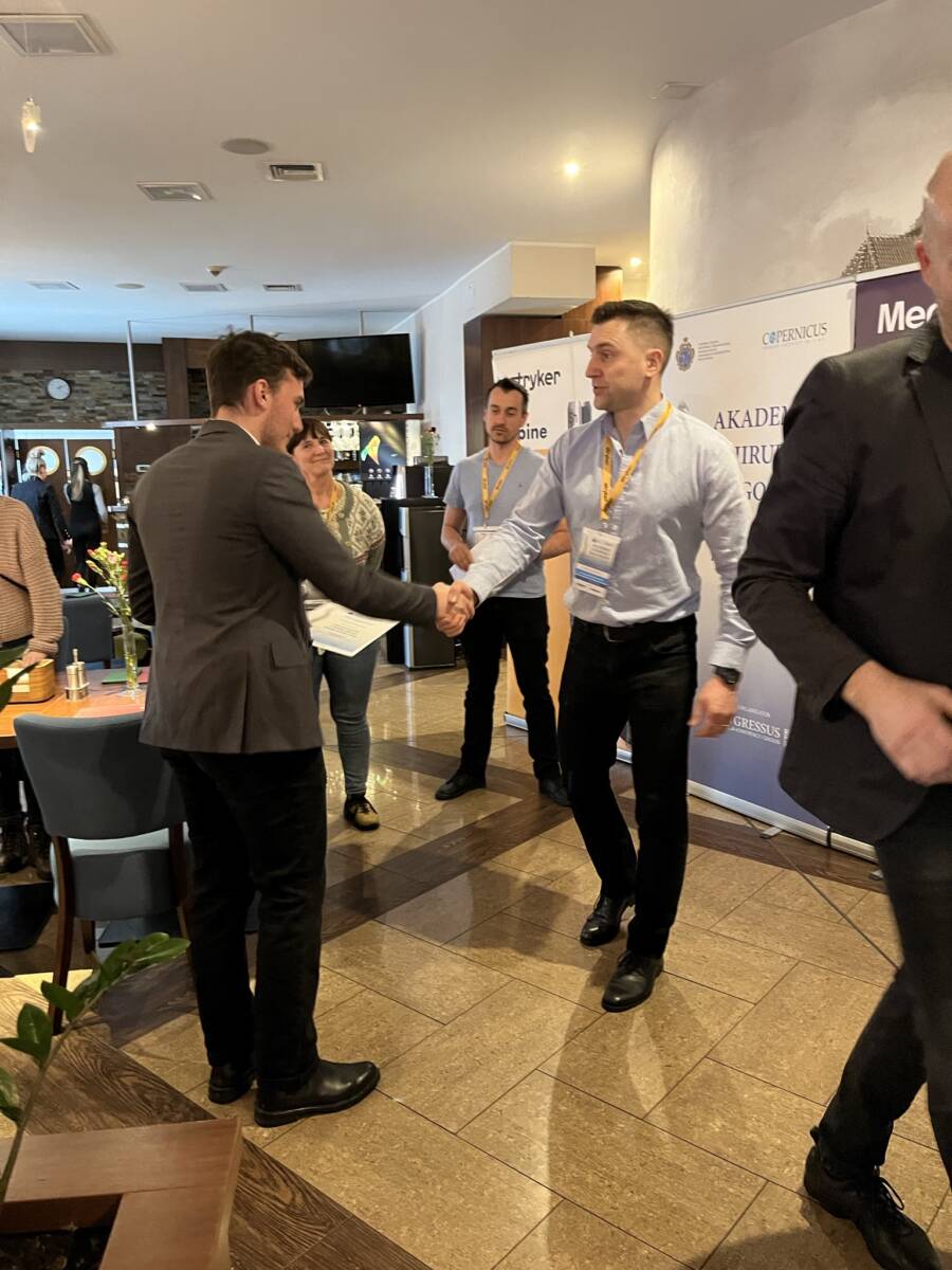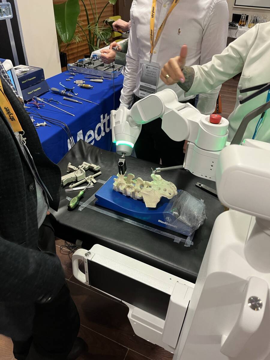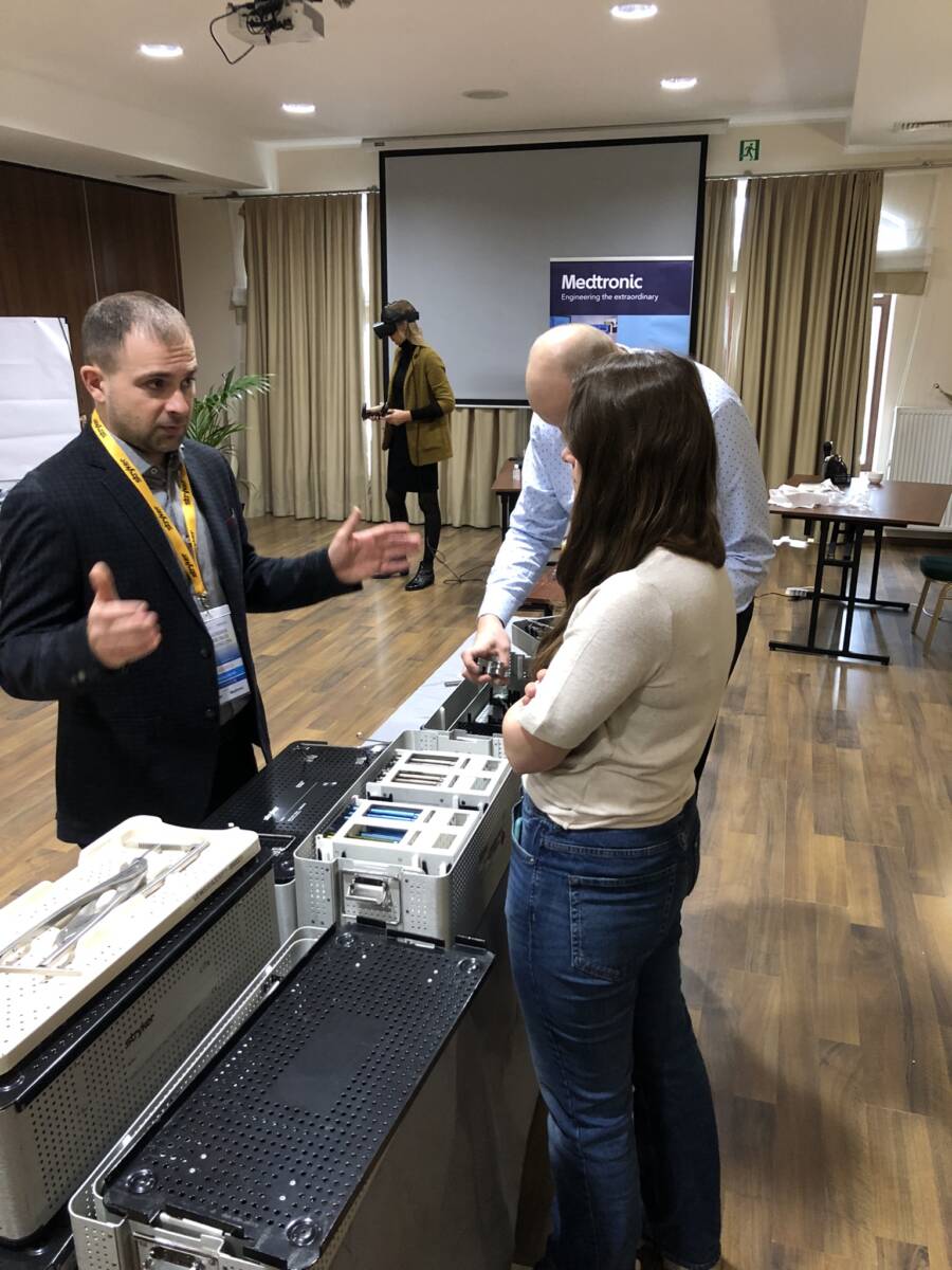 W dniach 12-13 marca 2023 r. w Gdańsku odbyła się pierwsza edycja Akademii Chirurgii Kręgosłupa, której pionierem był prof. Rafał Pankowski. Inauguracyjne spotkanie przerosło nasze oczekiwania, pod względem przygotowania współpracujących z nami firm Medtronic i Stryker oraz zaangażowania uczestników, którzy podzieleni na bardzo małe grupy, mieli okazję ćwiczyć techniki operacyjne oraz wykonywać zespolenia pod okiem prof. Rafała Pankowskiego i dr n. med. Marka Rocławskiego. Pierwszy dzień przebiegał na sali wykładowej, gdzie swoje prezentacje urozmaicone dyskusjami wygłosili obok prof. Pankowskiego i dr n. med. Rocławskiego, lek. Adam Augustyniak i lek. Sergiusz Bielocerkowski. Warsztaty odbywające się drugiego dnia nie byłyby tak ciekawe, gdyby nie firma Medtronic, która z niebywałą wiernością odwzorowała salę operacyjną oraz zaprezentowała innowacyjny robot MAZOR X. Uczestnicy za pomocą stworzonego trójwymiarowego obrazu mogli obserwować narzędzia oraz struktury anatomiczne, wcielając się w rolę operatora planującego zabieg. Podobne uatrakcyjnienie zapewniła firma Stryker, udostępniając okulary 3D szczycące się ogromnym zainteresowaniem. Poniżej relacja fotograficzna z wydarzenia, a kolejna edycja wkrótce!